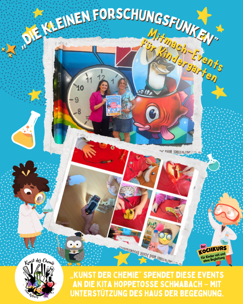 Möchten Sie, dass die Forschungsfunken auch in Ihre KiTa kommen? Gerne besuche ich Ihre Einrichtung für einen Projekttag oder eine ganze Forscher-Woche.